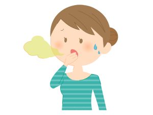 原因:にんにくやニラ、ネギなどの臭いの強い食べ物や、タバコ、アルコールが原因となる口臭です。これらも一時的なもので、時間とともにニオイは弱まります。